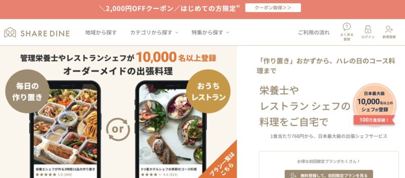 まず、1番最初に紹介するのは、料理代行サービスのシェアダインです。