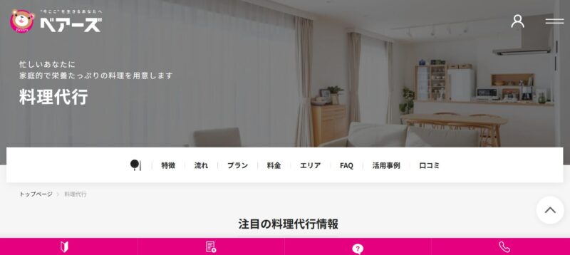 4つめに紹介するコスパよく料理を依頼できる家事代行サービスはベアーズです。