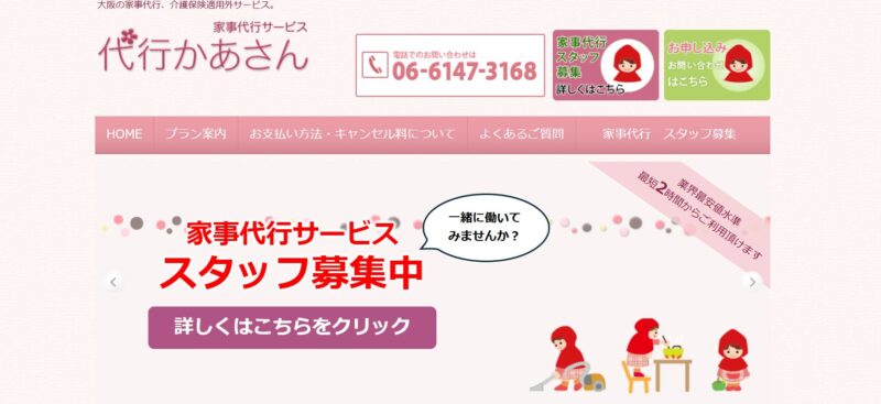 代行かあさんは大阪市に拠点のある、家事代行業者で、大掃除専用のプランがあるのが魅力的です。
